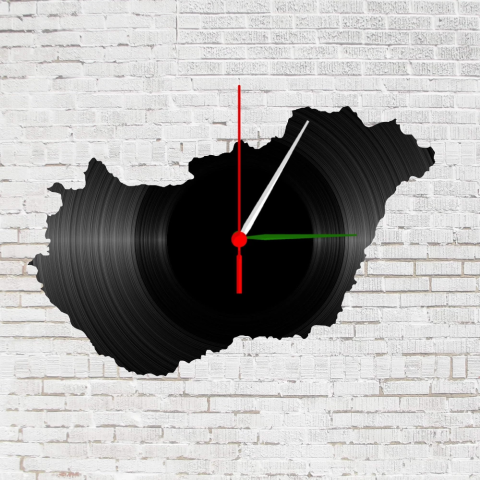Anyaga: erdeti bakelit hanglemez Óraszerkezet: csendes, fém mutatókkal Mérete: 30cm átmérő Működése: 1db AA elemmel (1,5V-os ceruza elem) nem tartozék