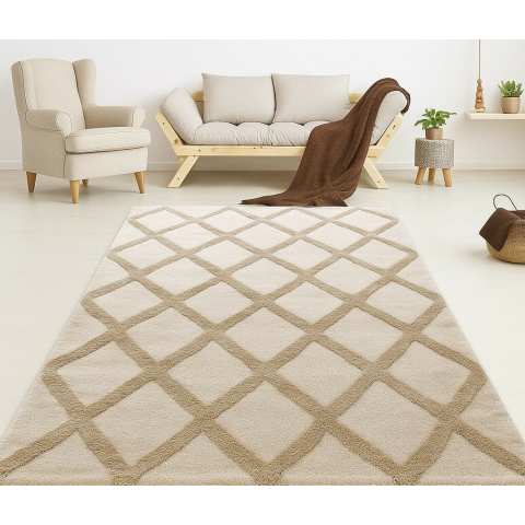 Cozy Lux Bézs-Krém Geometrikus Szőnyeg (160x230cm) - Stílus és Kényelem Otthonodban! 🏡 A Cozy Lux szőnyeggel otthonod új dimenziót kap! Ez a vastag, puha és elegáns szőnyeg nem csupán egy kiegészítő, hanem a komfort és a stílus megtestesítője. A 3D g...