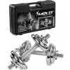 Krómozott kézisúlyzó szett tároló dobozzal. - A szett tartalma: 4 db 2,5 kg-os súlytárcsa 4 db 1,25 kg-os súlytárcsa 2 db rúd (2 x 1,5 kg) 4 db bilincs (4 x 0,5 kg) Összes súly: 20 kg