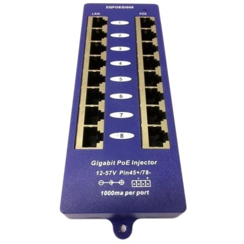 PoE injektor - passzív PoE, 8 PoE port, LAN portok átviteli sebessége 1 Gbit, kimeneti feszültség 57 V, 1000 mA kimeneti áramerősség, üzemi hőmérséklet 0 - 40 °C, tápellátás hálózatról, mérete 25 × 60 × 180 mm (Ma×Sz×Mé), lila kivitel Ez az egyedülálló POE-PAN8-GB panel, képes 8 passzív PoE injektor energia ellátására, 8 beépített PoE extraktor segítségével. Ez egy nagyon költséghatékony megoldás IP telefonok, IP kam