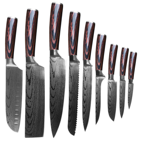 1 kép OEM Professzionális konyhai késkészlet, HRC 60 japán acél, pakka fa nyél, 9 kés