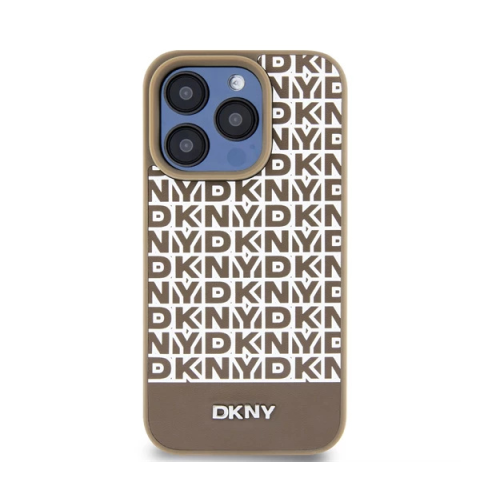 1 kép OEM PU Leather Repeat Pattern Bottom Stripe Apple iPhone 15 Pro tok barna