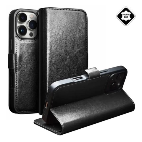 1 kép OEM QIALINO Oldalra nyitható bőrtok Apple iPhone 16 Pro fekete