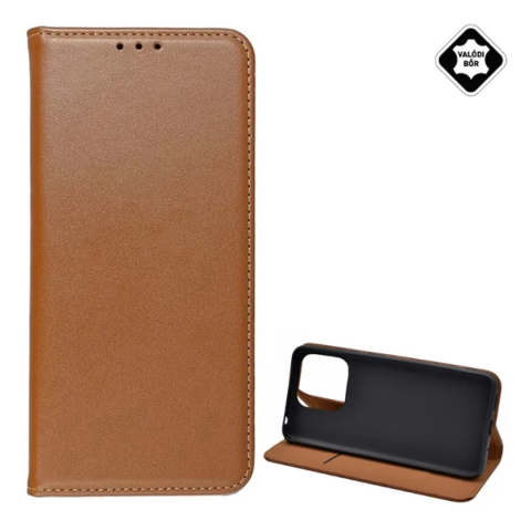 1 kép OEM Redmi 12C GIGAPACK Tok álló, valódi bőr FLIP, asztali tartó, BARNA