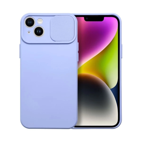 Slide Apple iPhone 14 Plus, kameravédős szilikon tok, levendula