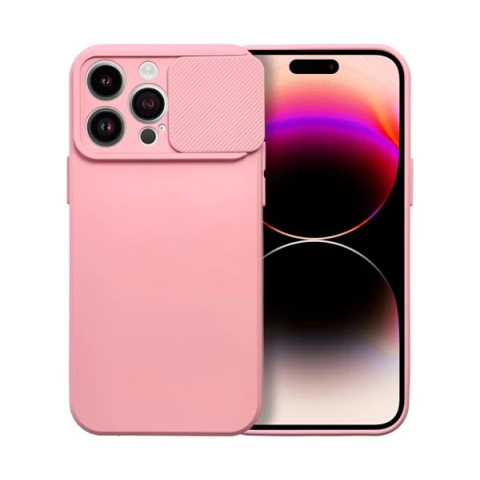 Slide Apple iPhone 14 Pro Max, kameravédős szilikon tok, rózsaszín