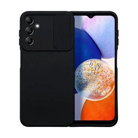 Slide Samsung Galaxy A14 5G/A14 4G, kameravédős szilikon tok, fekete