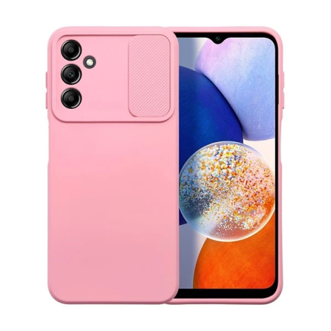 Slide Samsung Galaxy A14 5G/A14 4G, kameravédős szilikon tok, rózsaszín