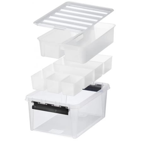 1 kép OEM SMARTSTORE Classic 15 Műanyag tárolódoboz fekete fogantyúkkal 7 rekeszes átlátszó