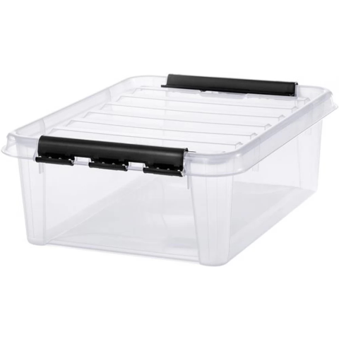 OEM SMARTSTORE Classic 24 Műanyag tárolódoboz 21 liter fekete fogantyúkkal átlátszó bútor termékleírás