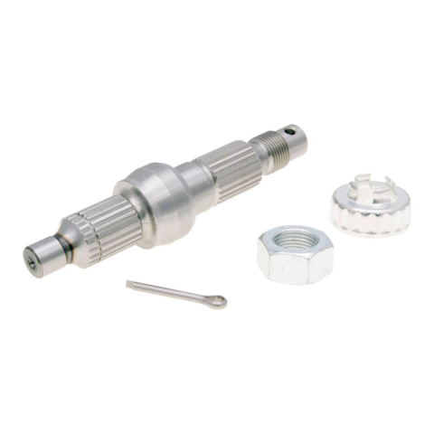 1 kép OEM Standard 126mm-es kimeneti tengely + anya, biztonsági sapka és biztosítószeg - Piaggio, Gilera
