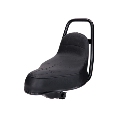 A kényelmes fekete bonanza kinézetű chopper ülés fekete sissy barral és fehér Puch felirattal rendelkezik, hogy illeszkedjen a Puchhoz, az illeszkedő 22 mm-es ülőcsővel. A felszereléshez található egy bilincs az ülés alatt. Méretek: Ülésbilincs: kb. 22 m