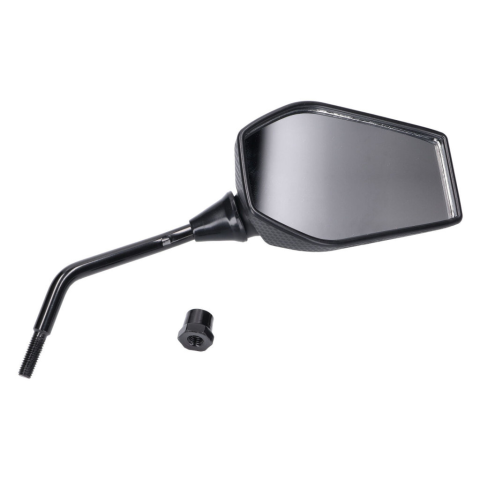 A jobboldali külső visszapillantó tükör hosszú M8 jobb menettel és E-jelöléssel rendelkezik, és alkalmas különböző Derbi, Motorhispania és Peugeot járművekre. Természetesen ezt a tükröt használhatja bármely más robogón is, amelynek 8 mm-es jobb menete van