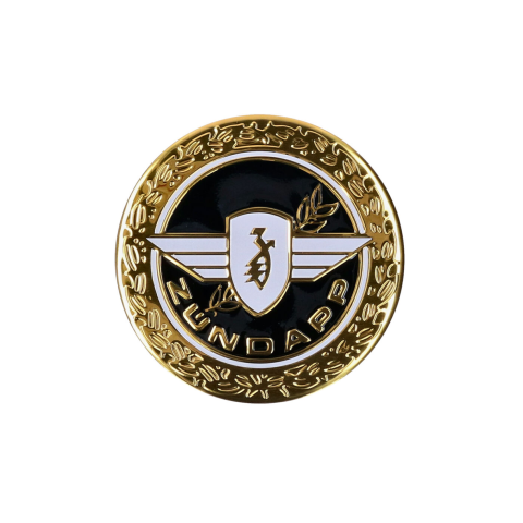 1 kép OEM Standard Zündapp alumínium matrica embléma, 64 mm átmérőjű, kerek, fényes arany