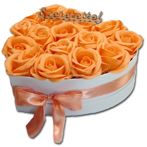 Szappanrózsa szívbox fehér rózsadoboz - barack - L