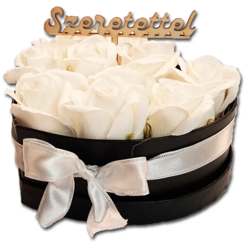 1 kép OEM Szappanrózsa szívbox fekete rózsadoboz - fehér- L