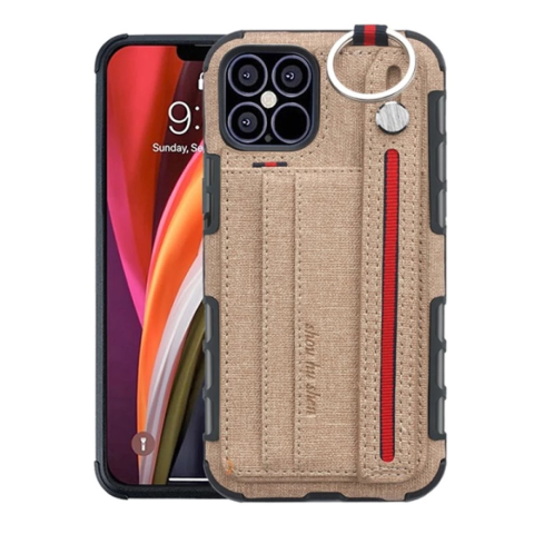 1 kép OEM Szilikon telefonvédő (ütésállóság. asztali tartó. kártyazseb. textil hátlap + kézpánt) VILÁGOSBARNA