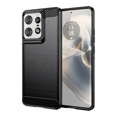 1 kép OEM Szilikon telefonvédő (ütésállóság. légpárnás sarok. szálcsiszolt. karbon minta) FEKETE