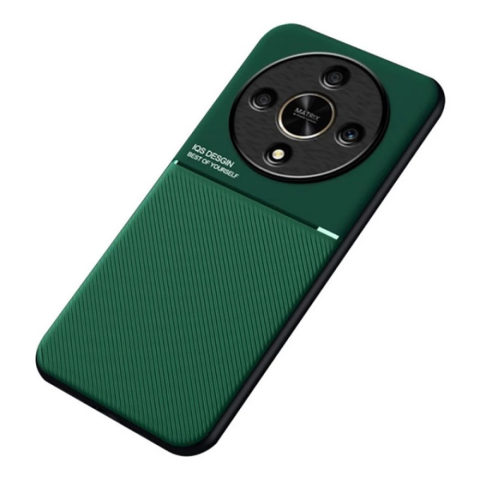 1 kép OEM Szilikon telefonvédő (ütésállóság. mágneses. bőr hatású hátlap. csíkos) SÖTÉTZÖLD