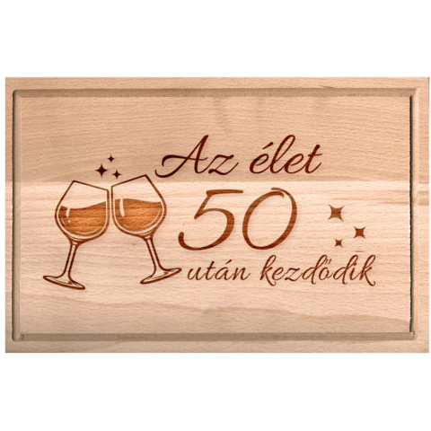 Teljes OEM Születésnapi borospoharas vágódeszka Az élet 50 után kezdődik XXL termékleírás