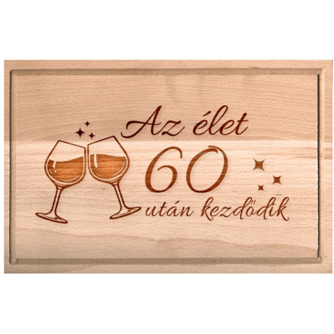 Teljes OEM Születésnapi borospoharas vágódeszka Az élet 60 után kezdődik XXL termékleírás