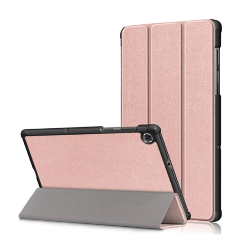 1 kép OEM Tok álló. bőr hatású (FLIP. oldalra nyíló. TRIFOLD. asztali tartó) ROZÉARANY