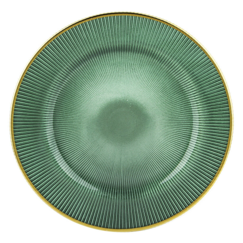OEM Üveg Tál zöld arany 33cm tányér és evőeszköz 1 kép