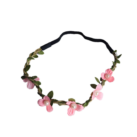 1 kép OEM Virágos hajdísz - Világos rózsaszín apróvirágos gumis hajpánt
