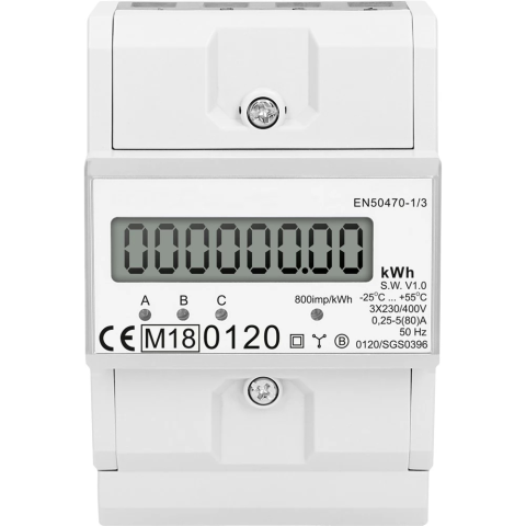 - Fogyasztásmérő LCD kijelzővel, 4,3 modul, DIN sínre szerelhető - Tápfeszültség: 3x230V/400V AC, frekvencia: 50Hz - Impulzuskimenettel rendelkezik . 800 impulzus/1Kwh - Méréshatár: 0,25-80A, direk...