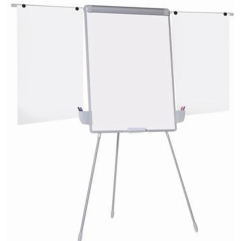 - Mágneses felületű flipchart tábla  - A kétoldalra kihajtható papírtartó segítségével egyszerre három lapon történhet a prezentáció  - Oldalsó írószertartóval és 2 db mágnessel (A filctollak és a pa...