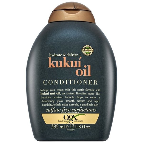 Kondicionáló - kiöblítendő, hidratáló és hajtöredezés elleni hatás, sérült és száraz hajtípusra Kondicionér OGX s obsahem oleje kukuí přináší intenzivní hydrataci a ochranu suchým, kudrnatým či nepoddajným vlasům. Díky exotickému kukuí oleji, získanému ze semen havajského stromu kukui, uzamyk