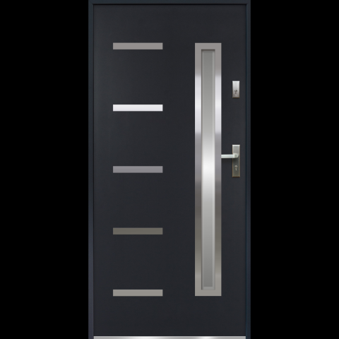1 kép OK DOORS ACÉL BEJÁRATI KÜLTÉRI AJTÓ JUVENTUS HOMOKFÚVOTT BAL ANTRACIT 100X207CM