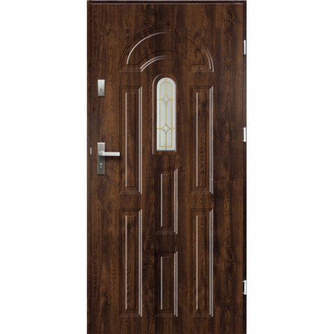 Az ajtó szárnyvastagsága 55 mm préselt acéllemez. Szigetelése expandált polisztirol. Lemezvastagság: (ajtókeret/ajtólap) - 1,2 mm/ 0,6 mm. Felülete UV álló PVC dekorfóliával van bevonva. Az ajtók 2 független zárszerkezettel, 3 állítható zsanérral vannak felszerelve, 180 fokos nyitási tartományban nyitható. Tömítés a keretben és a küszöbön. A beépítési egységcsomag tartozék: 011-es kilincs, 03-as zárbetét.