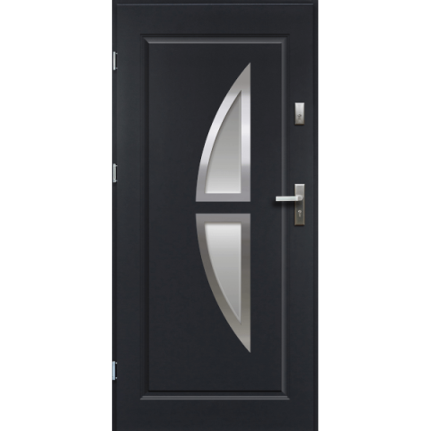 1 kép OK DOORS KRONOS HOMOKFÚVOTT ACÉL BEJÁRATI KÜLTÉRI AJTÓ, BALOS ANTRACIT SZÍNBEN
