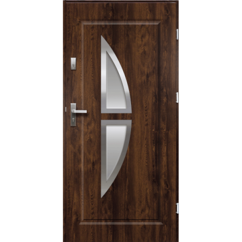 Az ajtó szárnyvastagsága 55 mm préselt acéllemez. Szigetelése expandált polisztirol. Lemezvastagság: (ajtókeret/ajtólap) - 1,2 mm/ 0,6 mm. Felülete UV álló PVC dekorfóliával van bevonva. Az ajtók 2 független zárszerkezettel, 3 állítható zsanérral vannak felszerelve, 180 fokos nyitási tartományban nyitható. Tömítés a keretben és a küszöbön. A beépítési egységcsomag tartozék: 011-es kilincs, 03-as zárbetét.