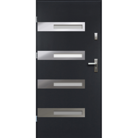 1 kép OK DOORS REA HOMOKFÚVOTT ACÉL BEJÁRATI KÜLTÉRI AJTÓ, BALOS ANTRACIT SZÍNBEN