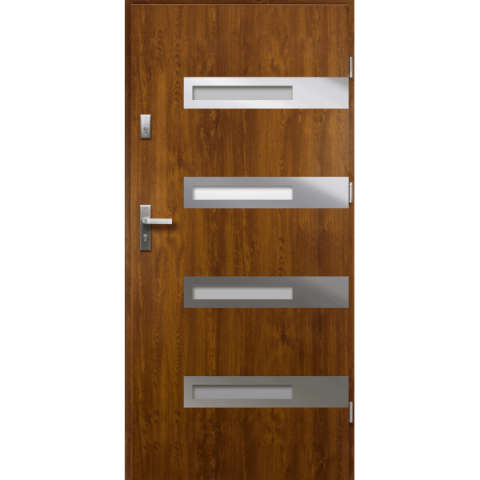 1 kép OK DOORS REA HOMOKFÚVOTT ACÉL BEJÁRATI KÜLTÉRI AJTÓ, JOBBOS ARANYTÖLGY SZÍNBEN