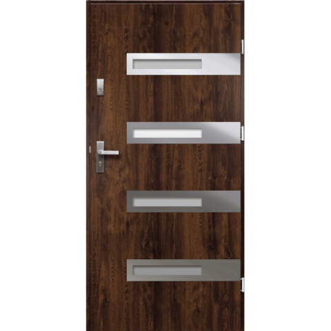 Az ajtó szárnyvastagsága 55 mm préselt acéllemez. Szigetelése expandált polisztirol. Lemez vastagsága: ( ajtó keret/ajtólap ) - 1,2 mm/0,6 mm. Felülete UV álló PVC dekorfóliával van bevonva. Az ajtó 2 független zárszerkezettel, valamint 3 állítható zsanérral van felszerelve, 180 fokos nyitási tartományban nyitható. Tömítés a keretben és a küszöbön. A beépítési egységcsomag tartozék: 011-es kilincs, 03-as zárbetét.