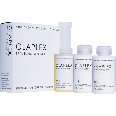 Hajápoló szett - tartalom: 1x Bond Multiplier N°. 1 (100 ml), 2x Bond Perfector N°. 2 (100 ml), hatékonyan regenerálja a hajat a kezelés alatt és azt követően egyaránt Az OLAPLEX Traveling Stylist Kit (3x100 ml) hatékonyan regenerálja a hajban lévő törött végeket kémiai kezelés alatt és után. Az egyedi termékek erősítik és regenerálják a kémiai, termikus és
