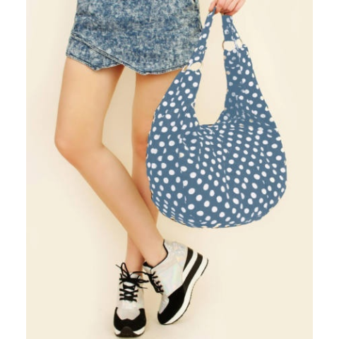 Olasz bőr Pöttyös bevásárló táska-Kék
