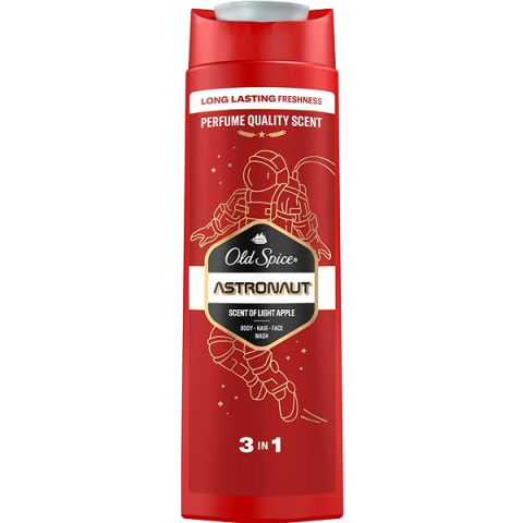 Az Old Spice Astronaut 3 az 1-ben tusfürdő és sampon friss illatával eltávolítja a szennyeződéseket és a szagokat. A tusfürdő hosszan tartó frissességgel, a citrus, a fa és pézsma aromáival kiegészített illattal hajon, testen és arcon egyaránt használható. Az Astronaut a Red Collection termékcsalád része, illata a tiszta vizes jegyekre épül, illatával a legkifinomultabb