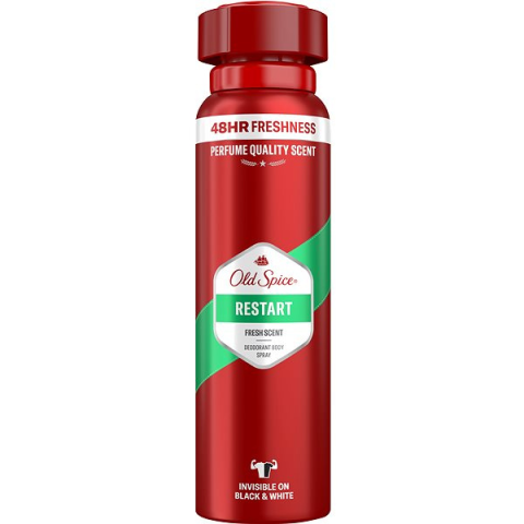 Dezodor - férfi, spray kivitel, normál bőrre ajánlott, frissítő illattal, hűsítő és relaxáló, hosszan tartó hatású, mindennapi használatra, gyorsan száradó, szagok ellen, 150 ml-es kiszerelésben Az Old Spice Restart dezodor spray friss, felejthetetlen illattal elsősorban férfiaknak készült. Akár 48 órán át frissen tartja a hónaljadat. Légy részese a friss illatnak, bármit is csináls