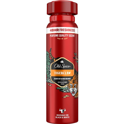 Dezodor - férfi, spray kivitel, normál bőrre ajánlott, narancs és grépfrútos illattal, frissítő, hosszan tartó hatású, mindennapi használatra, nem hagy foltot, szagok ellen, alumíniummentes, 150 ml-es kiszerelésben Az Old Spice Tigerclawdezodor spray friss, a tigris erejét megidéző illattal elsősorban férfiaknak készült. Akár 48 órán keresztül frissen tartja a hónaljadat. Légy részese a friss illa