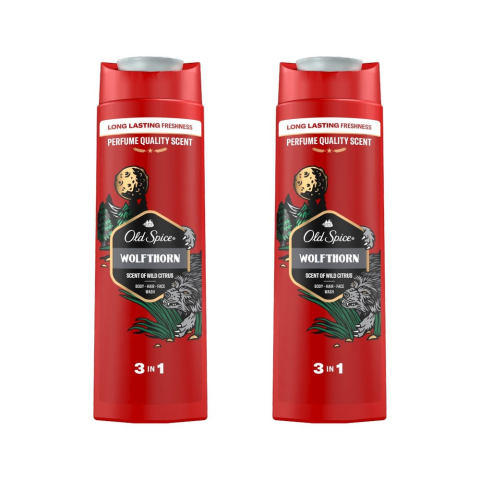 1 kép Old Spice WolfThorn tusfürdő és sampon férfiaknak 3in1 (2x400 ml)