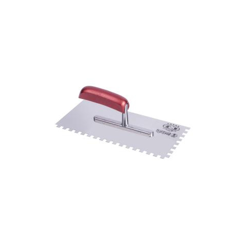 OLEJNIK Glettelő, fogazott INOX Profi • Bükkfa-markolat fémhatású lakkal 2 rétegben lakkozva • Szívós, 4 ponton hegesztett, magas igénybevételekkel szemben ellenálló rozsdamentes stabil acélszár, mely merev kapcsolatot biztosít a markolat és a glettvas között • Rozsdamentes acél glettvas: - két egymás melletti oldalon E-alakú fogazással - vastagság 0,7mm - szakító szilárdsága >1500N/mm2 - keménysége >46HRC