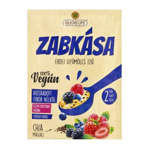 Oligolife vegán zabkása erdei gyümölcs édesítőszerekkel 65 g 100% Vegán zabkásáink mentesek az állati eredetű összetevőtől, és hozzáadott cukrot sem tartalmaznak, így szinte bármilyen táplálkozási irányzatba illeszthetőek. Magas rost, és fehérjetartalm