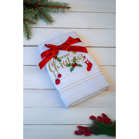 1 kép OLIMA karácsonyi törölköző Boldog Karácsonyi díszek hímzéssel OLXMAS03, White-45X70