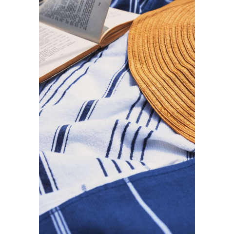 1 kép OLIMA OL1000 csíkos, rojtos strandtörölköző Olima, White/Light Navy-90X170