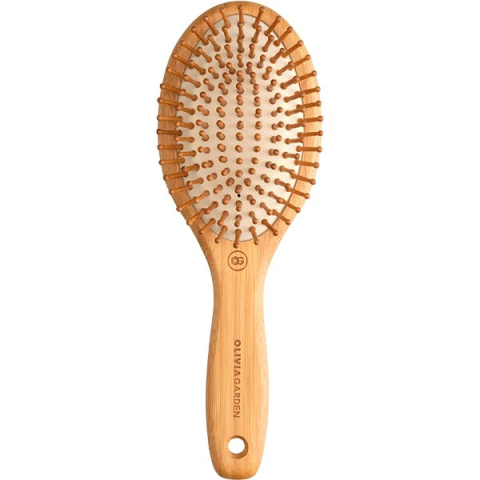 Hajkefe - lapos kefe, kifésüléshez ajánlott, hosszú, rövid, göndör, vékony szálú, erős szálú és sűrű hajra, fa nyél, fa sörték, mérete 23,5 × 8 cm (H×Sz), barna kivitel Az OLIVIA GARDEN Bamboo Touch masszázskefe 100%-ban megújuló forrásból származó bambuszból készült. A fából készült bambusz sörték gyengéden masszírozzák a fejbőrt, ezáltal fokozzák a vérkeringést és