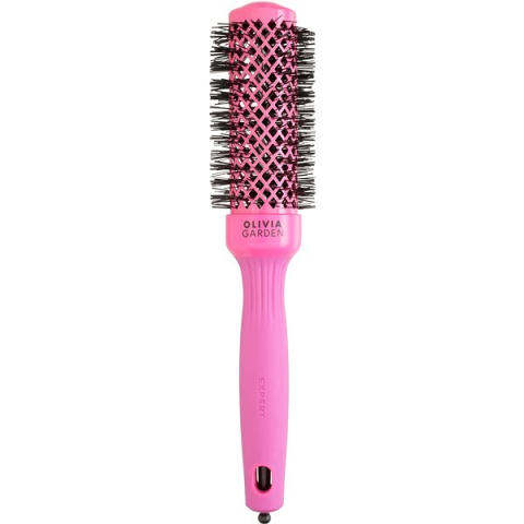 Hajkefe - körkefe, szárításhoz ajánlott, ergonomikus, hosszú, rövid, göndör, vékony szálú, erős szálú és sűrű hajra, műanyag nyél, nejlon sörték, 3,5 cm széles, rózsaszín kivitel Az OLIVIA GARDEN Expert Shine Pink kerek hajkefe segít a természetes hullámok létrehozásában és jelentős volument ad a hajnak. A kefe Kerámia + ion technológiával ellátott felülete hatékonyan védi a h
